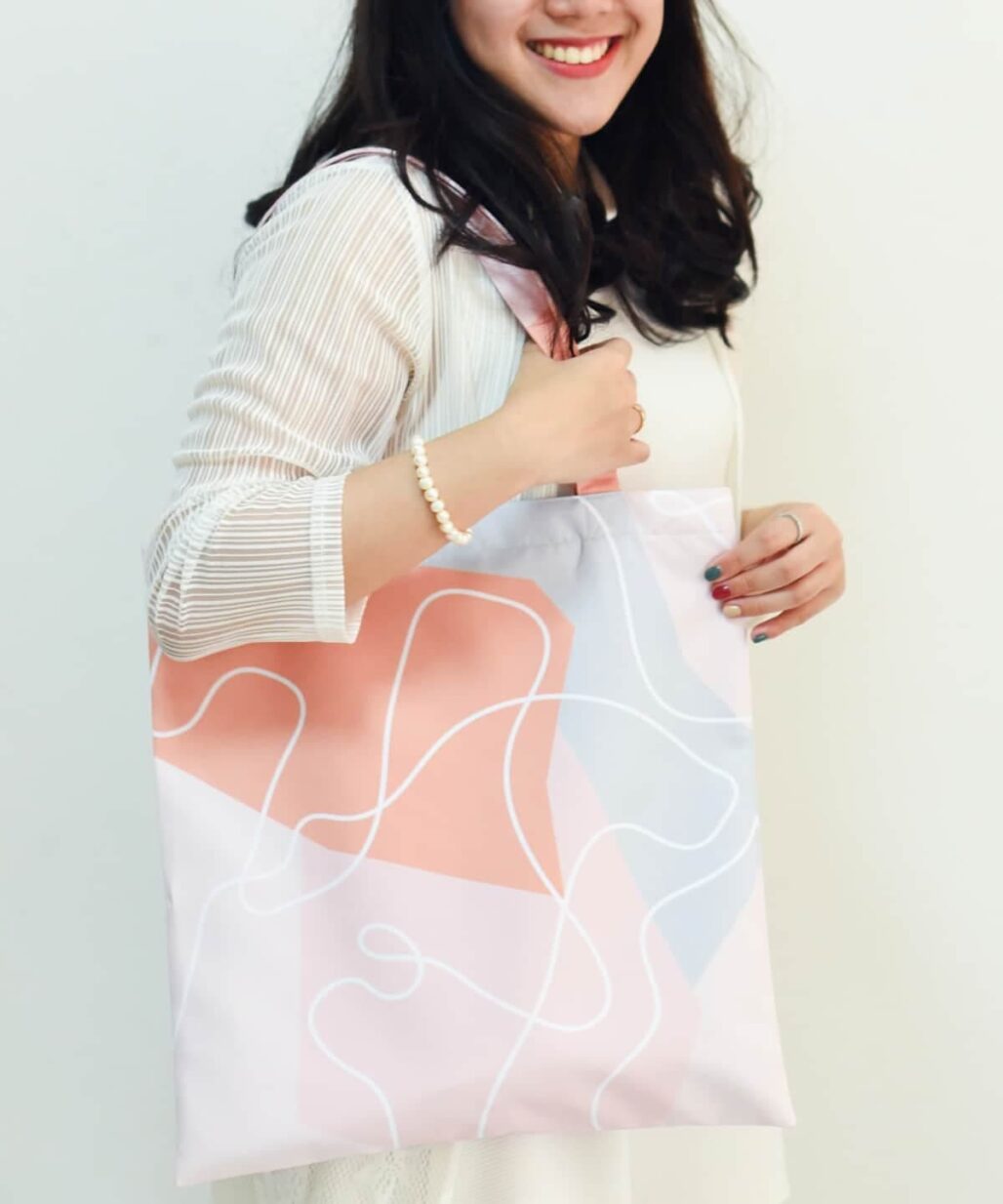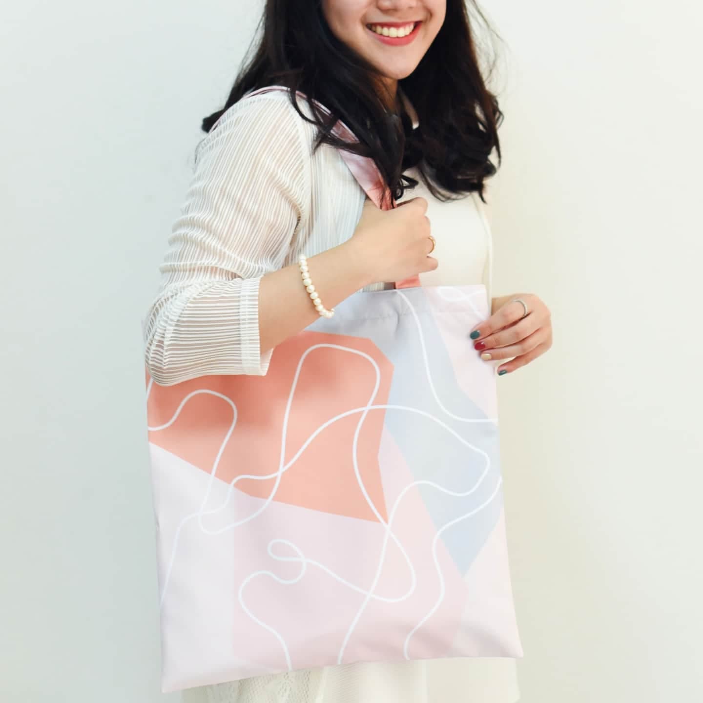 • กระเป๋าผ้าไมโครดัชเชส(micro duchess)นำเข้า เนื้อสัมผัสผ้าจะลื่นและมันเงาเล็กน้อยคล้ายผ้าไหม พิมพ์ลวดลายซึ่งเป็นลายเฉพาะของทางร้านออกแบบเอง