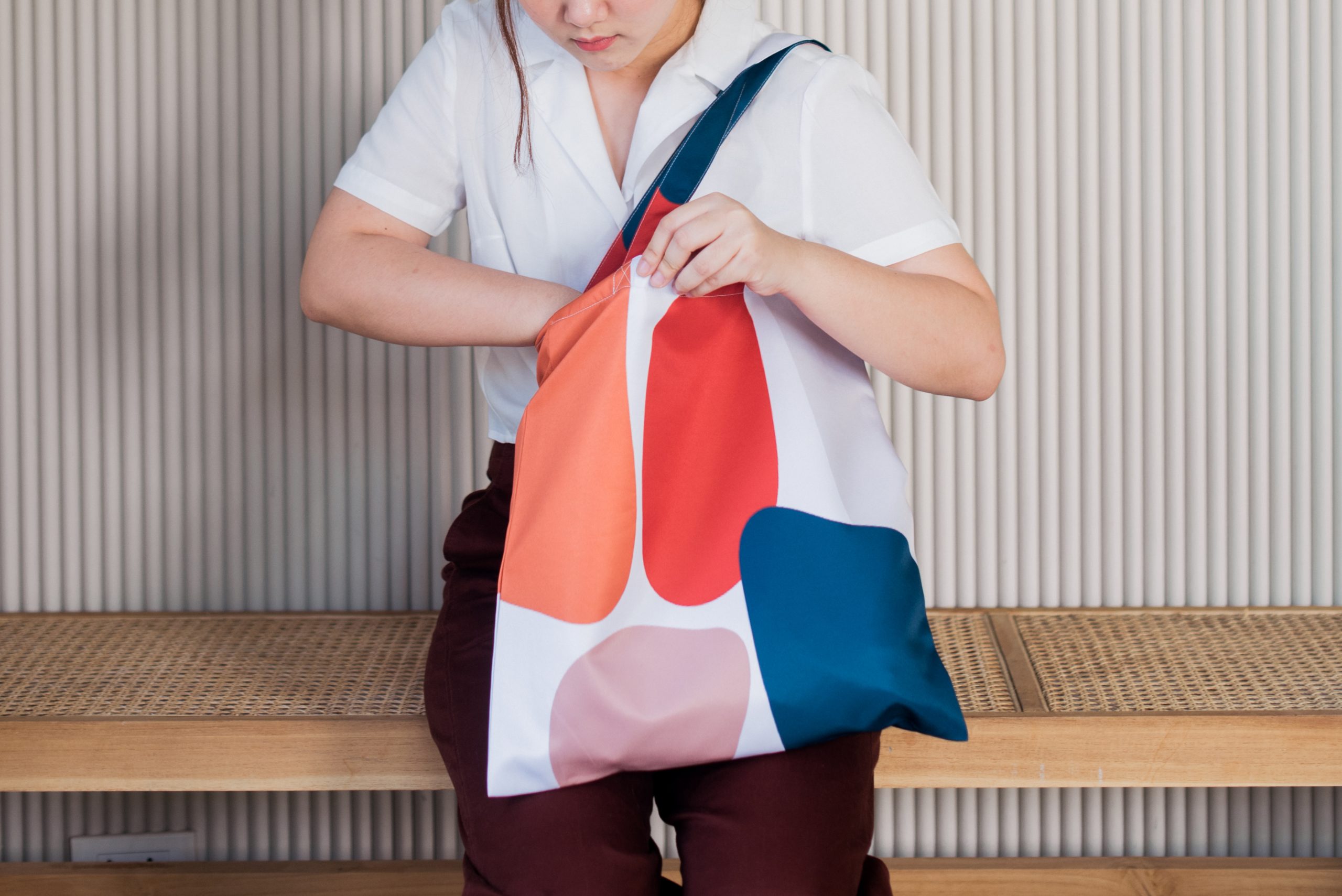 • กระเป๋าผ้าไมโครดัชเชส(micro duchess)นำเข้า เนื้อสัมผัสผ้าจะลื่นและมันเงาเล็กน้อยคล้ายผ้าไหม พิมพ์ลวดลายซึ่งเป็นลายเฉพาะของทางร้านออกแบบเอง