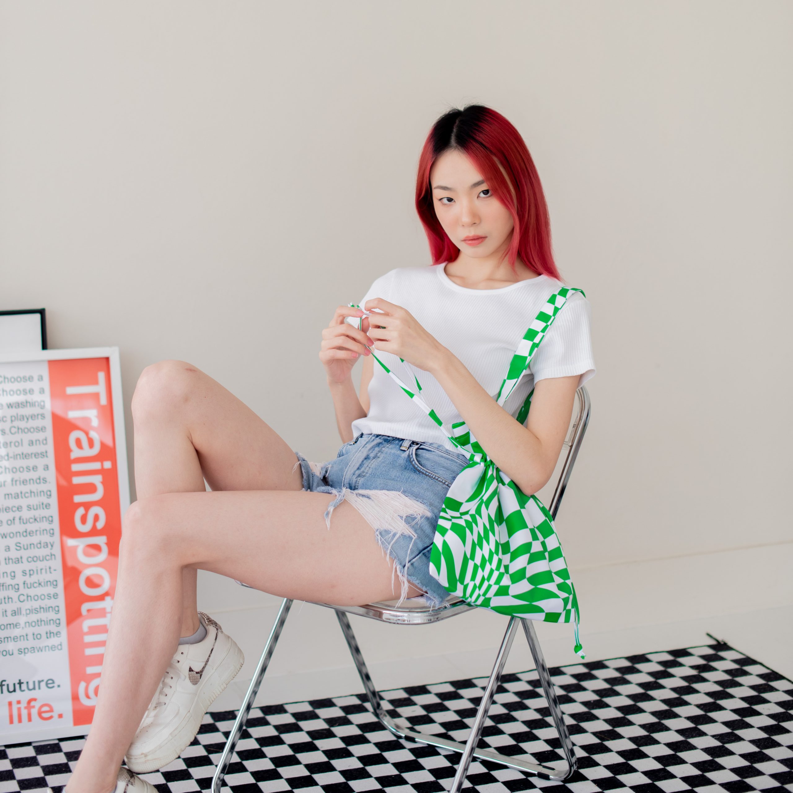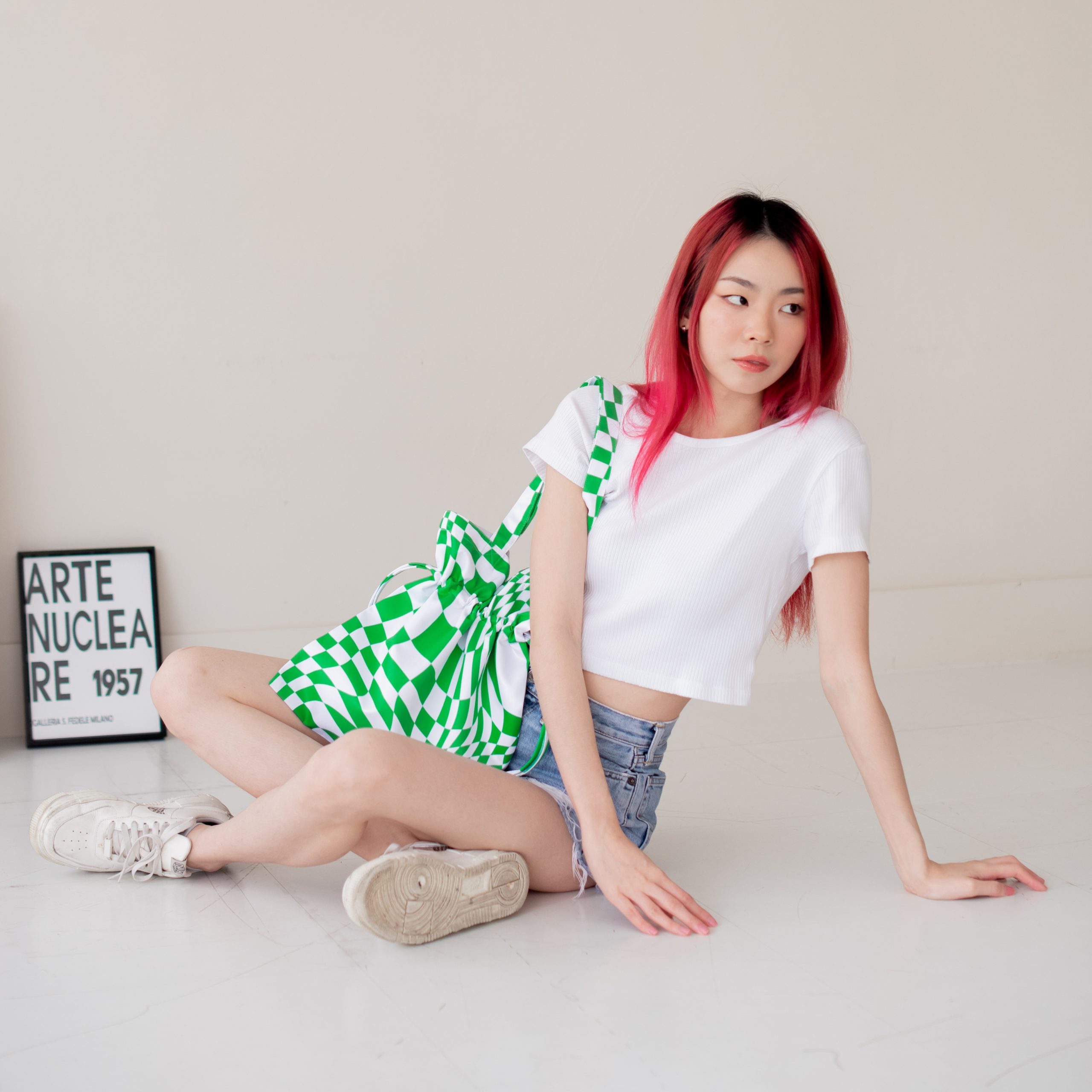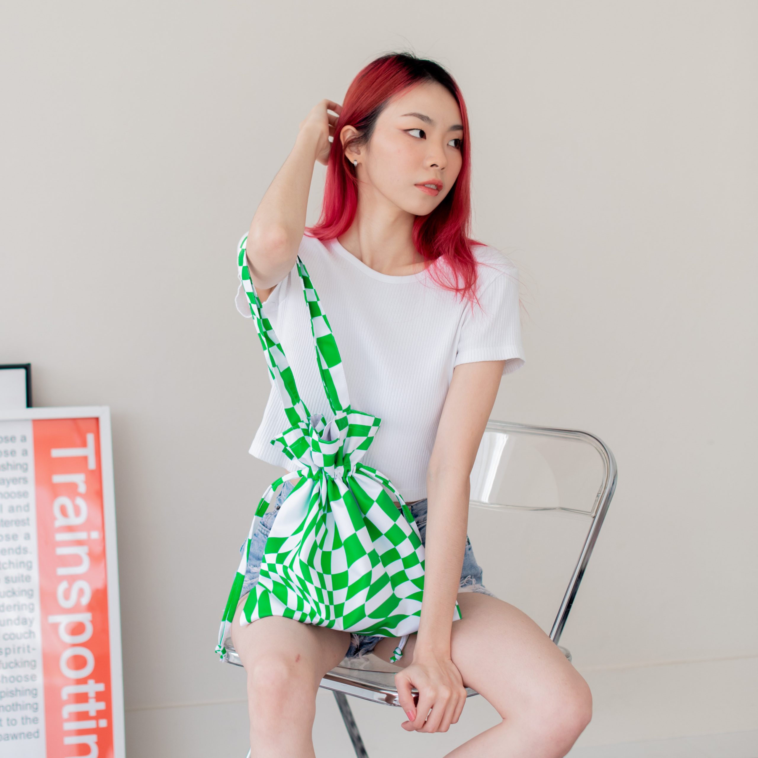 Check Distort Green Bucket Bag