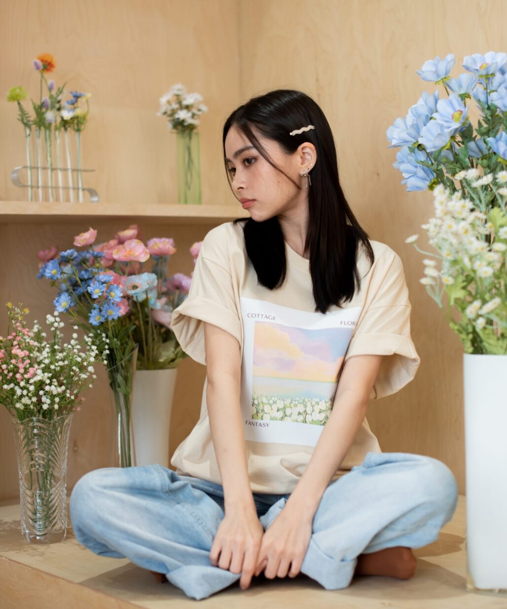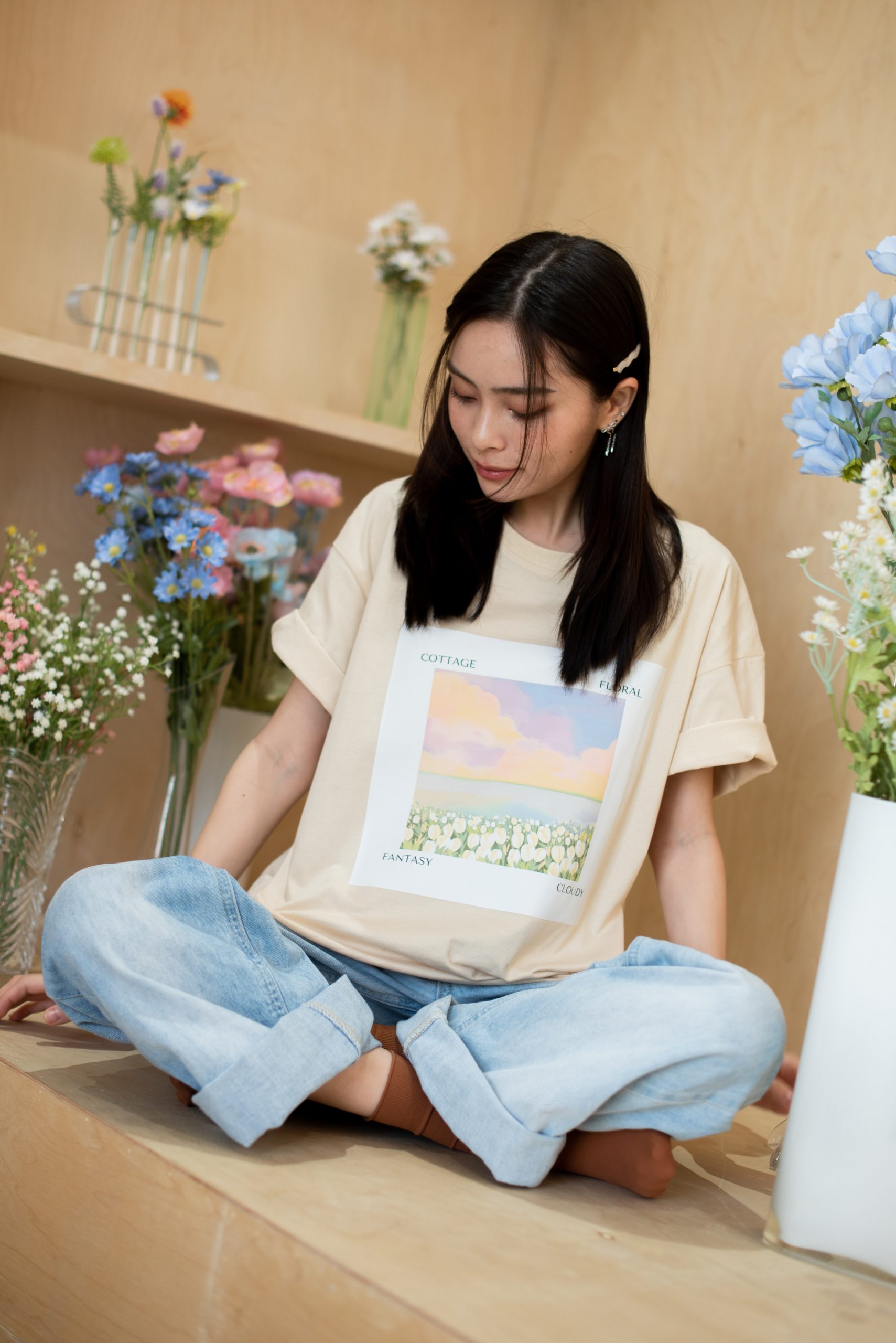 Wild Flower (Beige) I Overisized T-Shirt