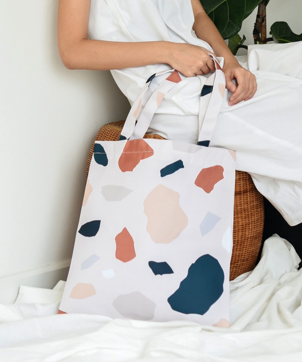 ” Micro Duchess tote with shiny and glossy texture like silk which is neatly designed a total pattern by VIBES