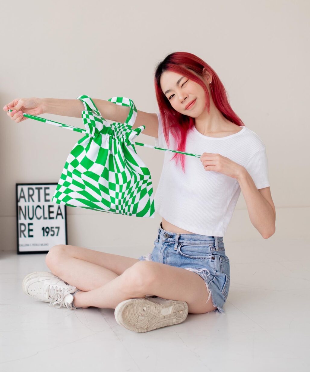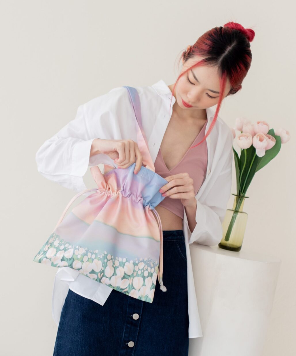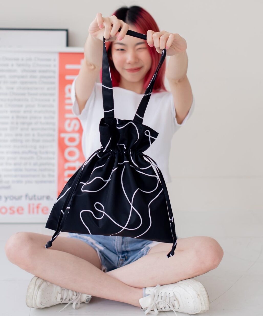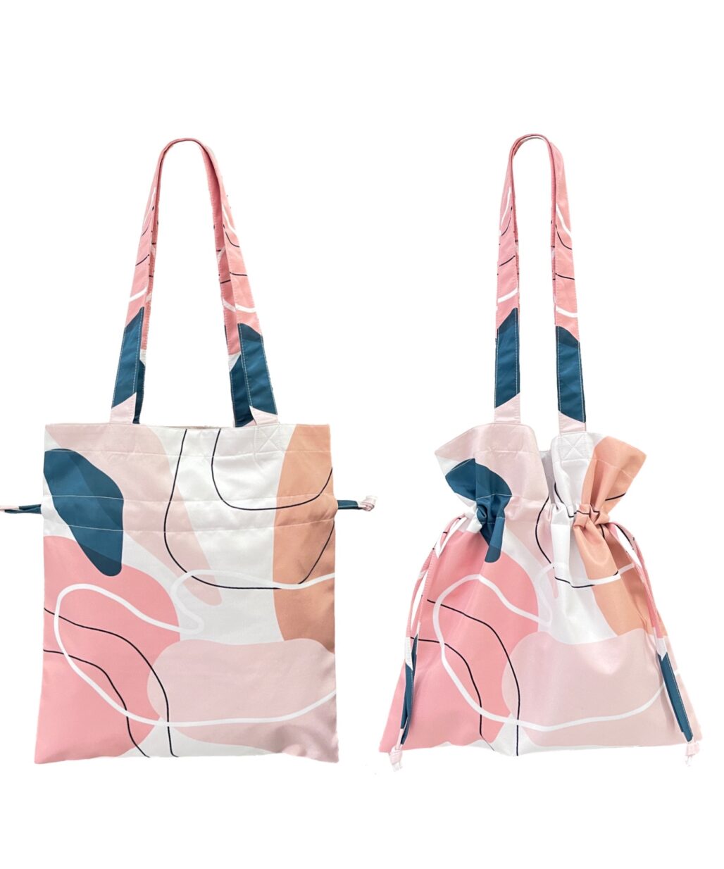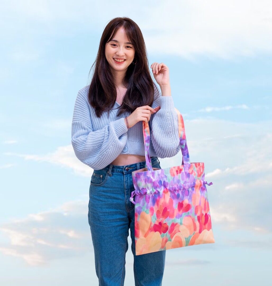 กระเป๋าผ้าไมโคร ดัชเชส พิมพ์ลายจาก Vibes แบบมีเชือกรูด ปิด-เปิด ปากกระเป๋า