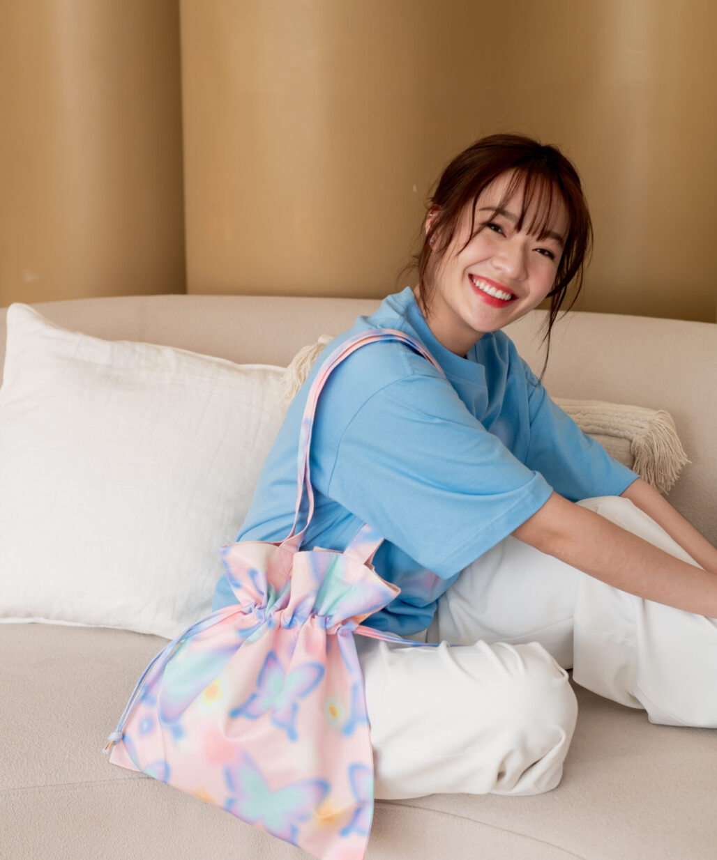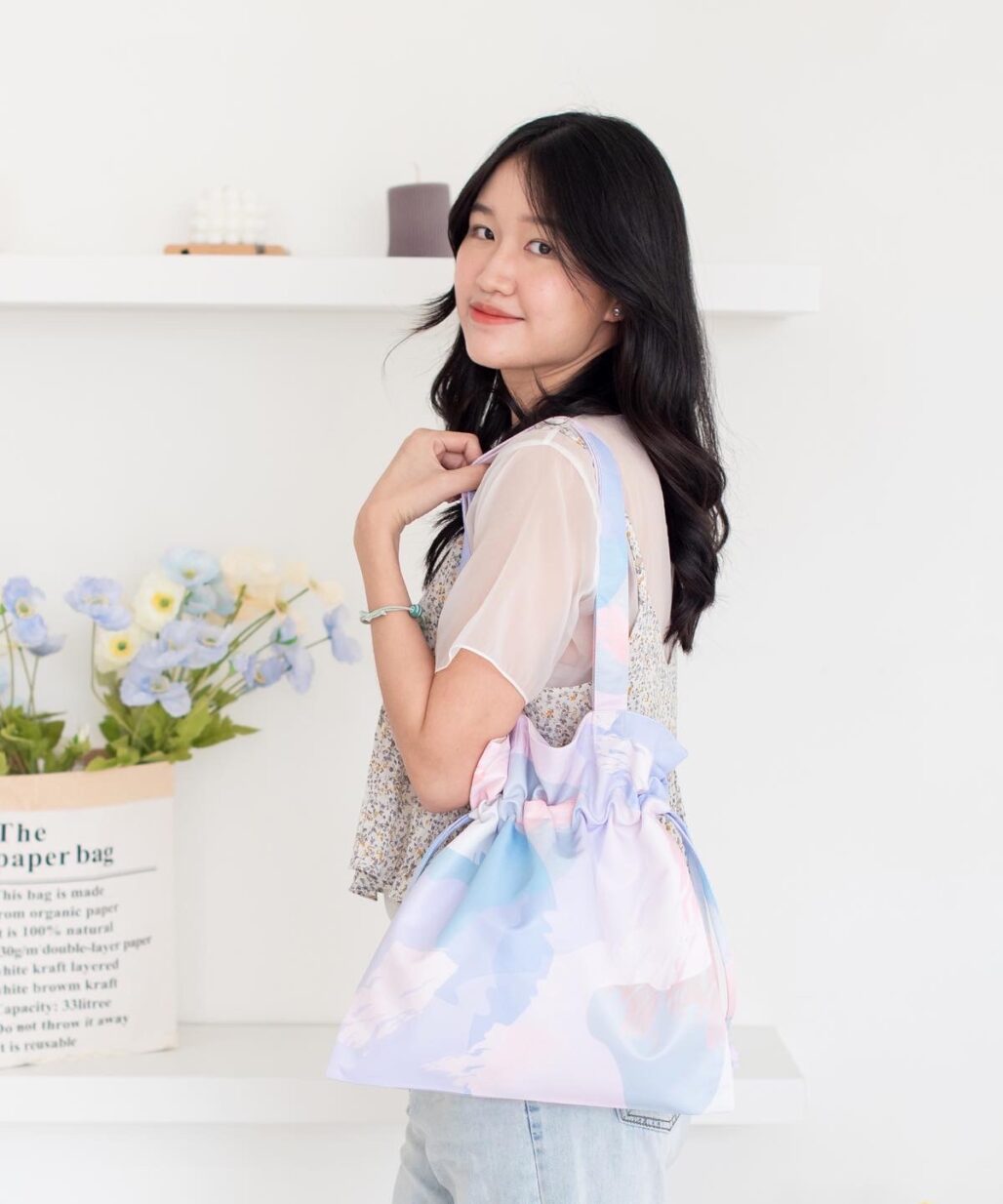 ✨☁️VIBES Bucket Bag – medium size กระเป๋าผ้าพิมพ์ลาย แบบมีเชือกรูด☁️✨