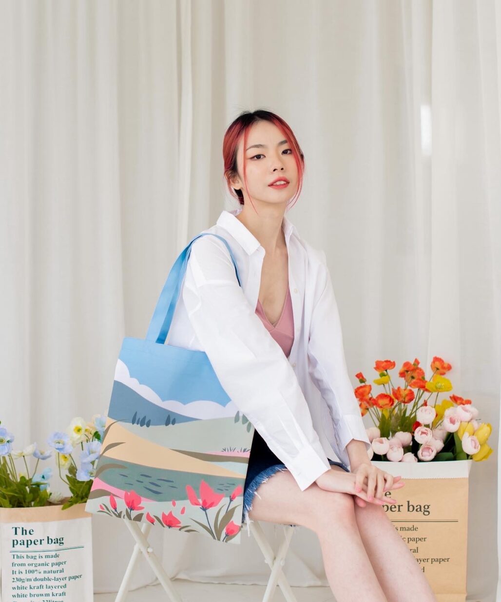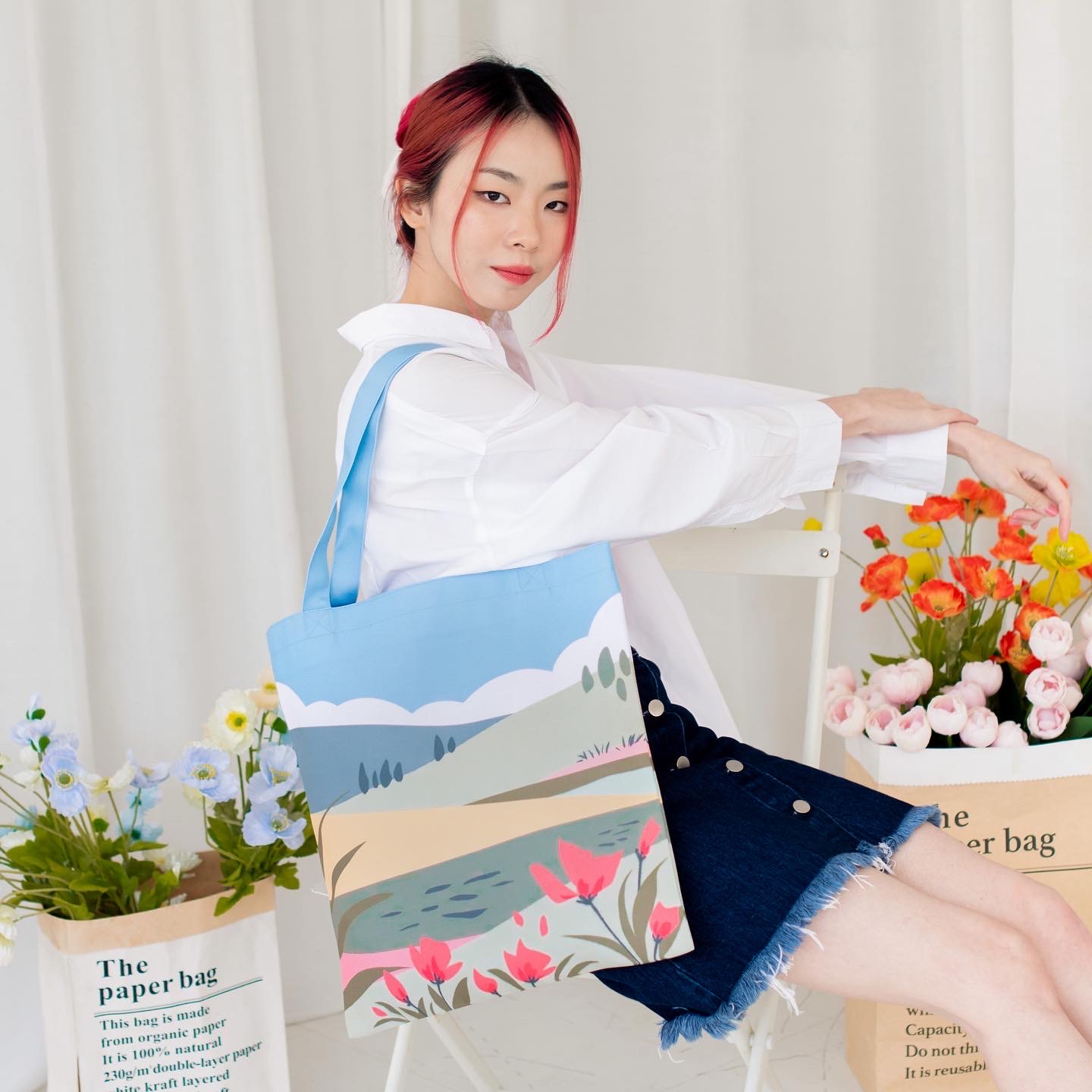 กระเป๋าผ้า vibes พิมพ์ลายลิขสิทธิ์เฉพาะของทางร้านออกแบบ และวาดเอง