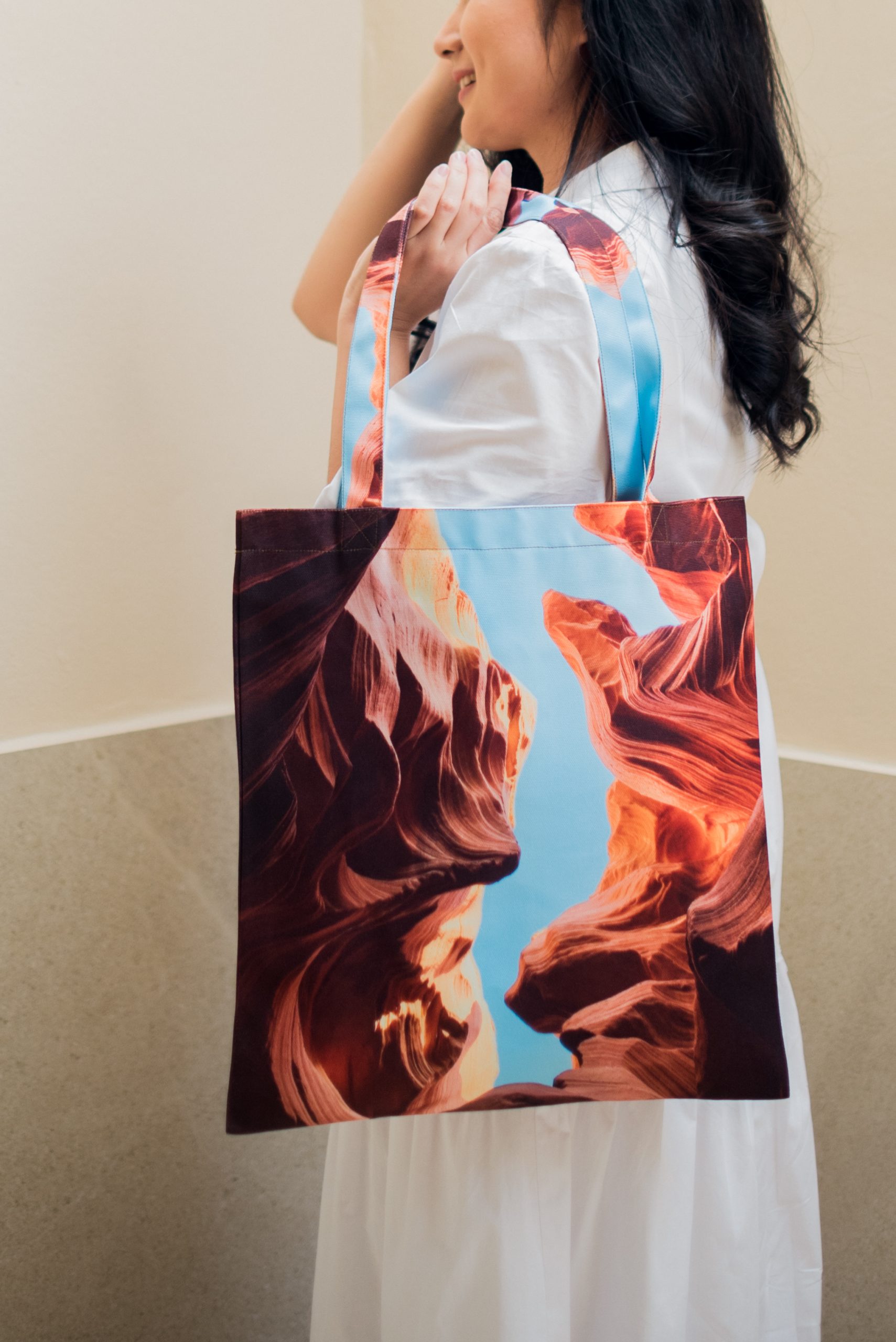 - กระเป๋าผ้าแคนวาสนำเข้าเกรดพรีเมี่ยม พิมพ์ลวดลายซซ่งเป็นลายเฉพาะของทางร้านอกแบบเอง